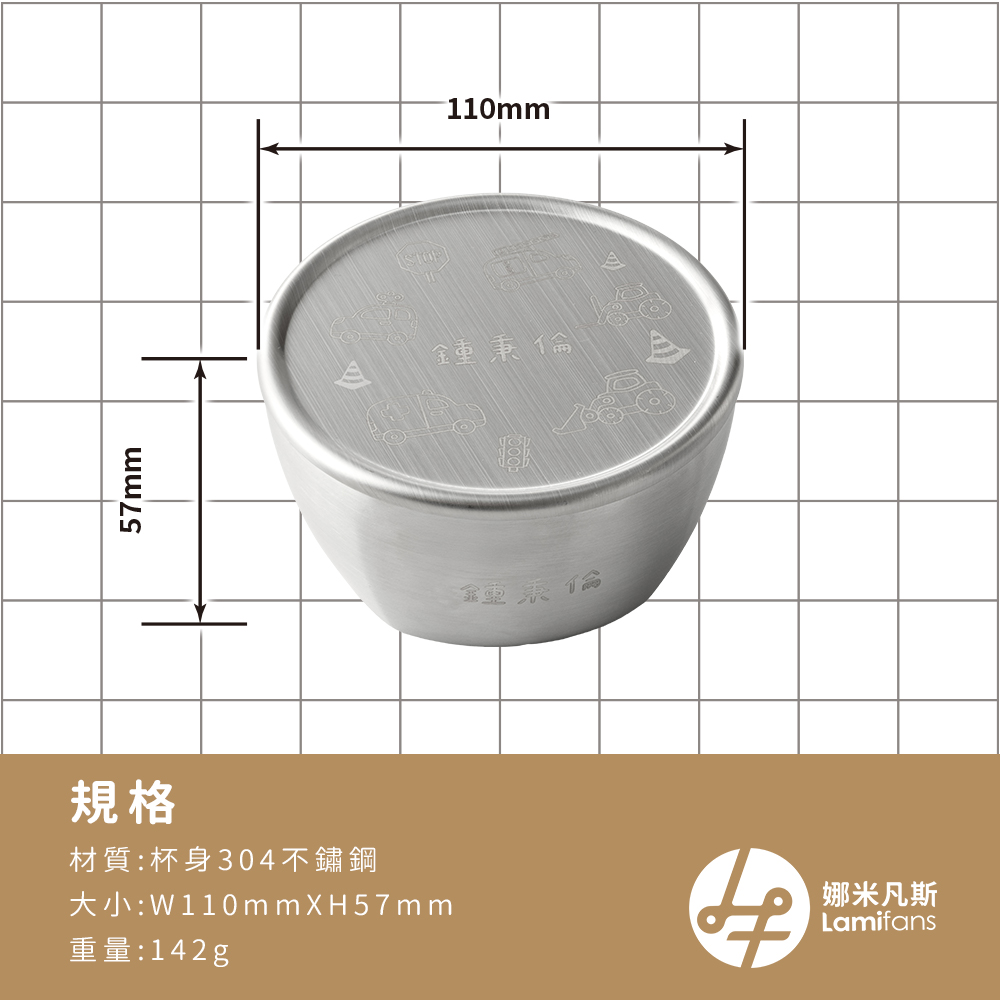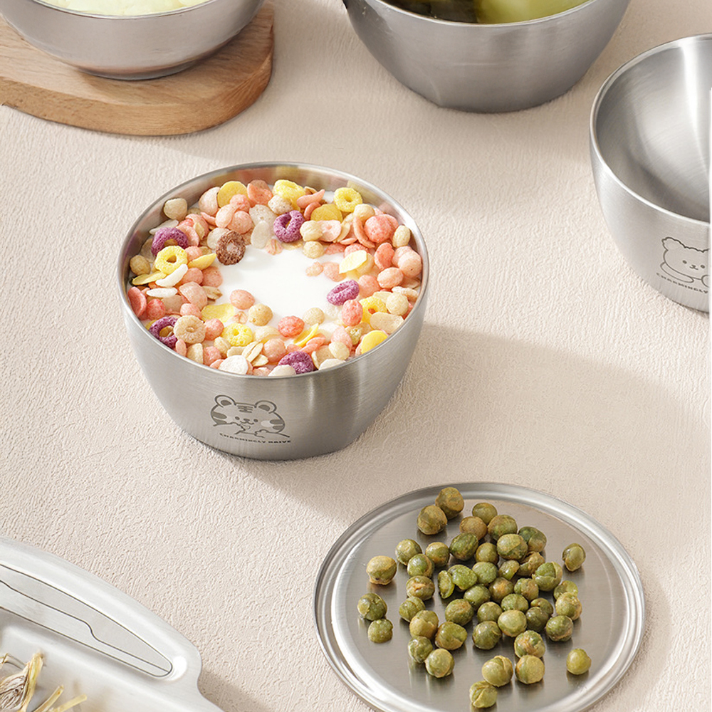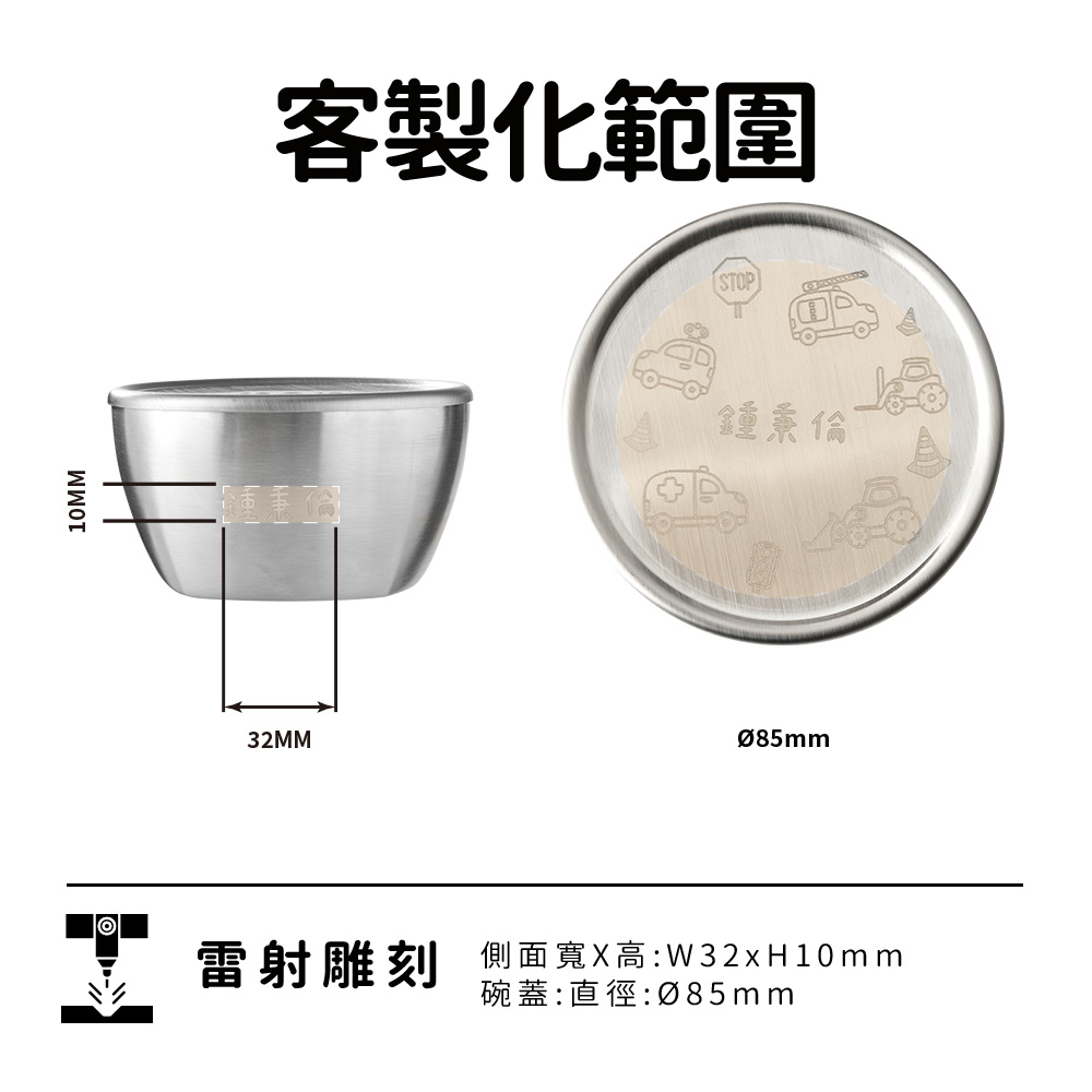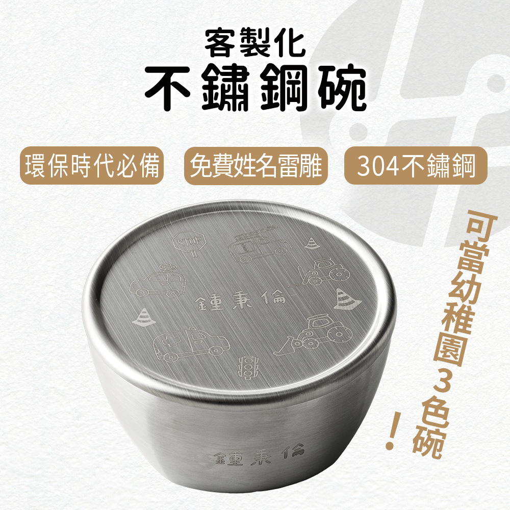 一體成形設計,不藏污納垢,洗起來超省力! 採用無接縫結構,沒有死角也沒有藏污空間,媽媽再也不擔心清潔問題。 304食品級不鏽鋼,健康安全無毒,耐摔耐熱不變形! 寶寶日常使用也OK,堅固耐用,陪你從副食品吃到小學沒問題 防燙隔熱設計,小手也能安心拿取! 加厚碗壁讓小朋友吃飯不燙手,獨立吃飯從容不怕受傷。 五款可愛插畫任選,還能自由加上名字或班級唷! 讓每個寶貝都有自己專屬的「名字碗」,學校、幼兒園都不怕搞混。